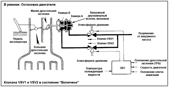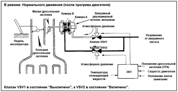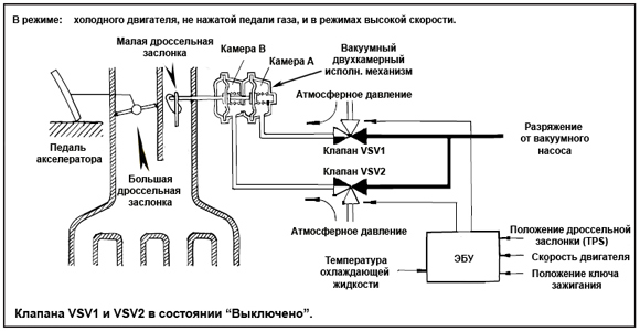 двигателя, электронный блок управления переводит вакуумные переключающие